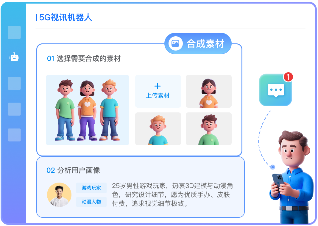 降低企业成本:在可视化营销场景下,利用5G视讯机器人技术,上线数字人与客户直接沟通,降低人力成本投入